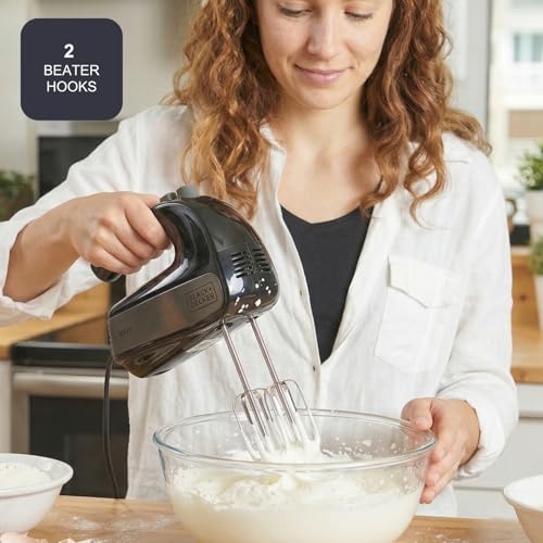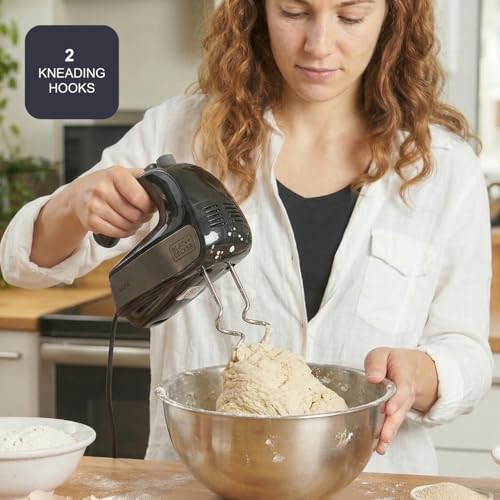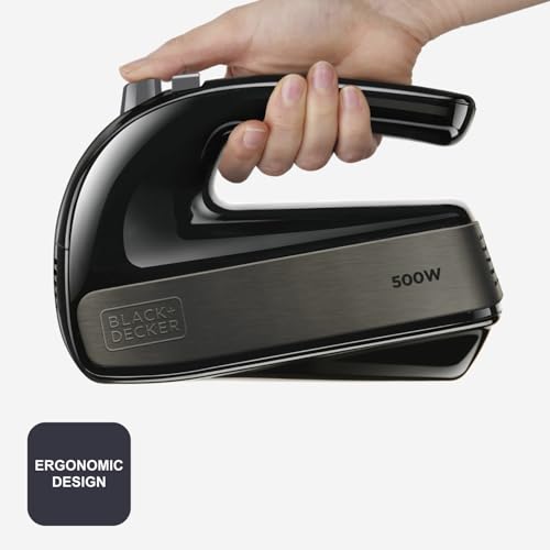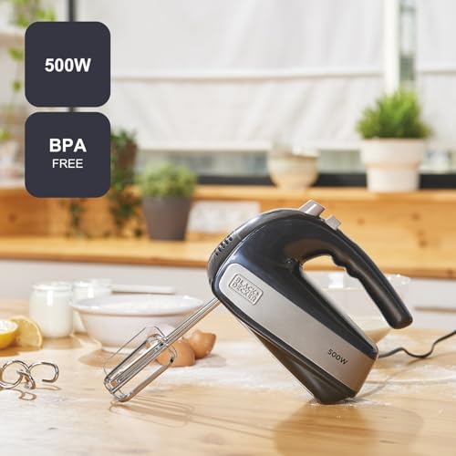 BLACK+DECKER BXMX500E - Sbattitore elettrico da 500W, 2 ganci per impastare, 2 fruste per montare,...