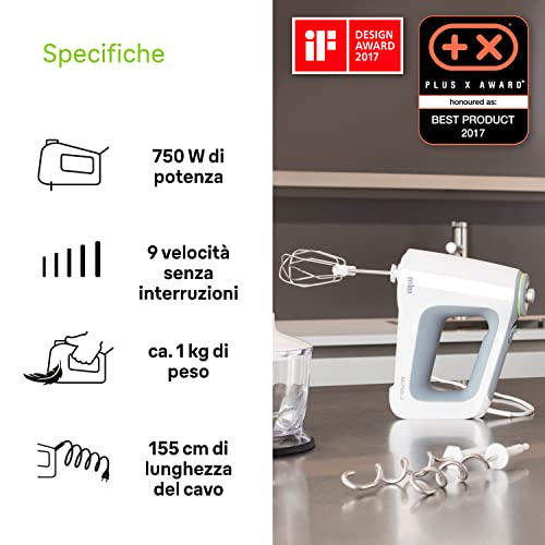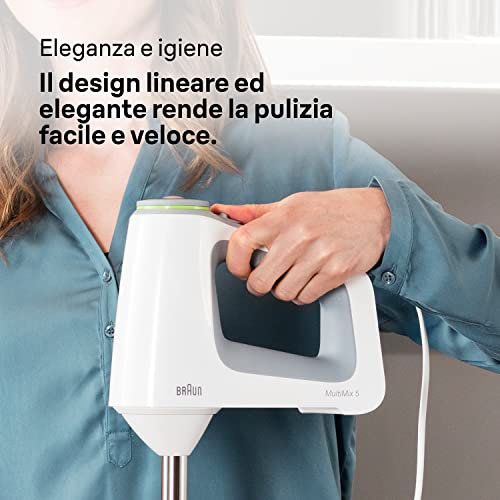 Lo sbattitore elettrico Braun MultiMix 5 HM 5137 è un modello che ha una caratteristica molto diversa rispetto ai classici modelli che si trovano in commercio. In questo caso infatti non parliamo di un normalissimo e semplice sbattitore elettrico manuale, ma di uno strumento dal triplo utilizzo che costituirà un valido alleato in cucina. In effetti all'interno della confezione troverete sia il classico sbattitore completo di due coppie di fruste, sia due diversi accessori, uno per l'utilizzo a immersione completo di contenitore graduato, e l'altro utilizzabile come classico tritatutto. Acquistando questo modello del marchio Braun andrete quindi ad avere a disposizione un vero e proprio set di strumenti da utilizzare per approcciarvi a diverse preparazioni in cucina. Gli unici due difetti che possiamo menzionare per quello che riguarda l'utilizzo di questo strumento sono la presenza di un cavo di alimentazione un po' corto e il fatto che è un po' rumoroso durante l'utilizzo. Per quanto riguarda il resto si tratta di un ottimo prodotto, potentissimo e caratterizzato da una velocità regolabile su più livelli, e sopratutto versatile e adatto a diverse preparazioni. Insomma, se volete uno strumento più completo rispetto al classico sbattitore, questo potrebbe fare esattamente al caso vostro.