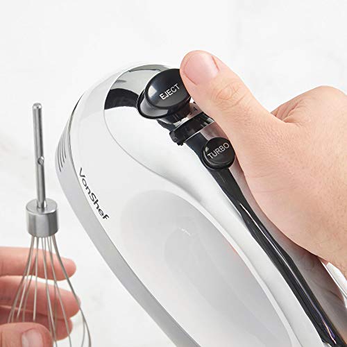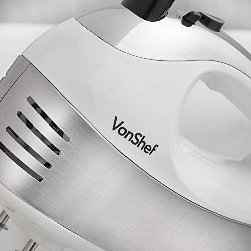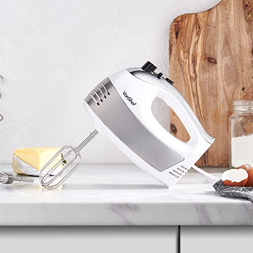 VonShef Sbattitore Elettrico Bianco da 400W – Comprende Fruste in Acciaio Inox a filo, a Spirale e da Cucina + 5 velocità con Pulsante Turbo
